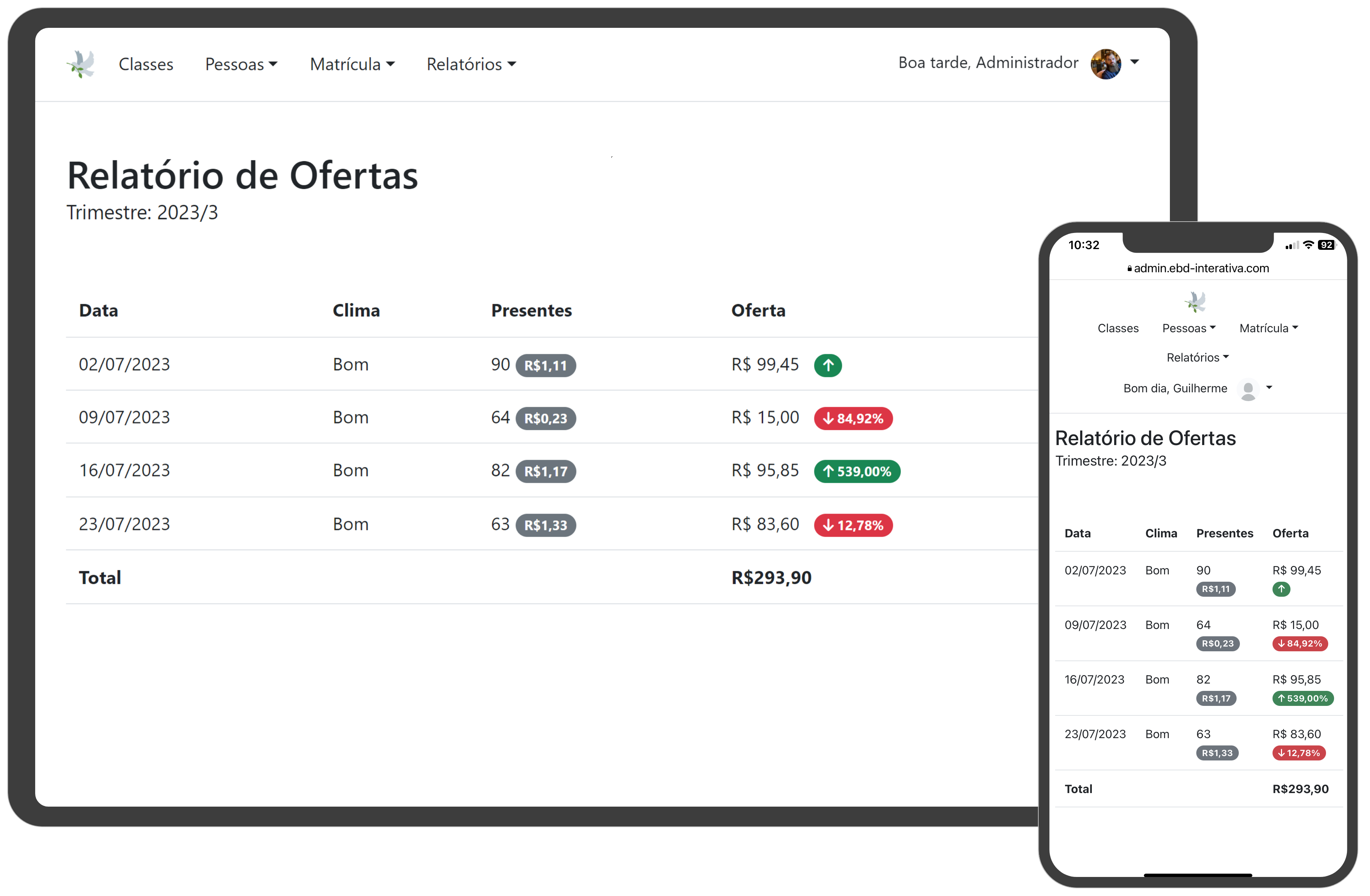 Por fim, o administrador tem a capacidade de gerenciar o trimestre, cadastrar classes, professores, alunos e ver gráficos e estatísticas. Com a EBD Interativa, escolas de ensino bíblico têm uma solução completa e interativa para acompanhar o desenvolvimento de seus alunos e professores.