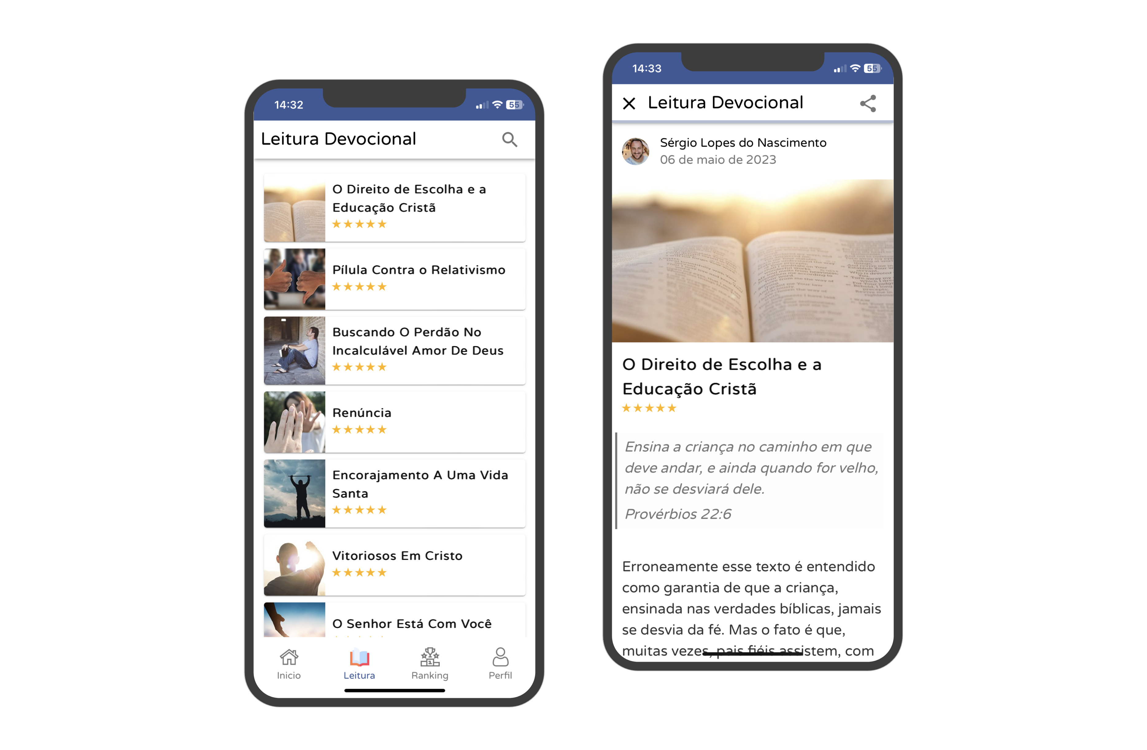 “O aplicativo facilita principalmente a leitura semanal, pois agora eu recebo ela diariamente em meu celular. Além disso, eu gosto muito sua abordagem gamificada, pois sou uma pessoa bastante competitiva, e isso me estimula ainda mais a estudar a lição durante a semana e a não faltar a nenhuma aula.”
